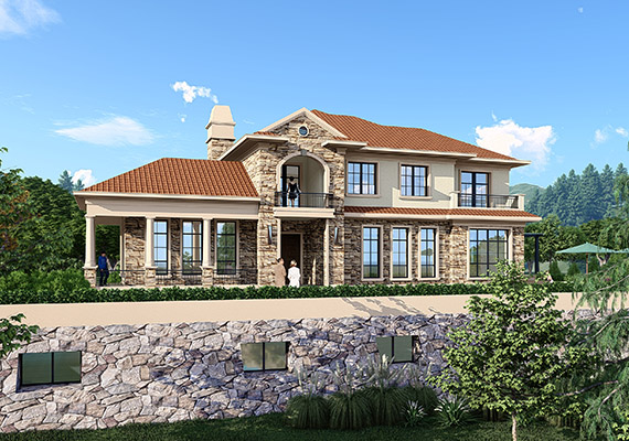 占地面積 125.0㎡ 土建造價 45.0萬 水庫邊的地中海別墅