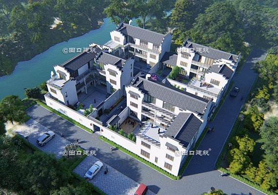 占地面積 813.9㎡ 土建造價 230.0萬 四棟獨門獨戶的中式別院組成的大合院