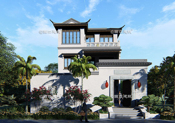 占地面積 131.7㎡ 土建造價 40.0萬 三層新中式小別院